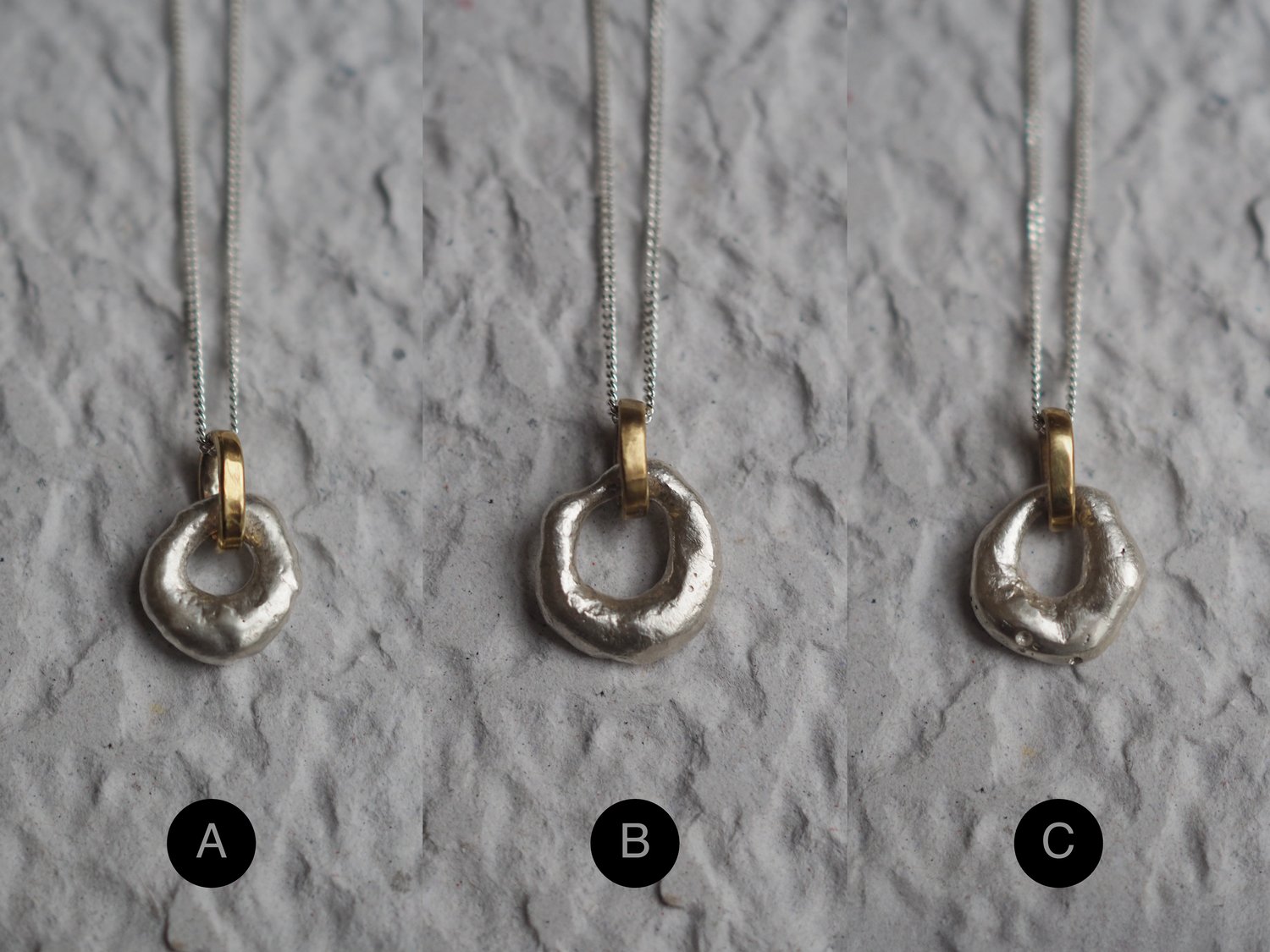 Made with recycled silver. Gold-colored ring is in brass.